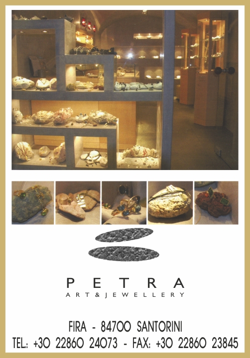 Petra, Art & Jewellery, Fira 84700 Santorini, tel.: +30 22860 24073, fax: +30 22860 23845